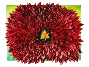 "FAUX COQUELICOT" composition origami papier et peinture acrylique - 86x68x6 cm