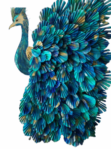 "LE PAON" Compositin origami papier et peinture acrylique - 80x100x10 cm