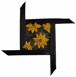 "SUNFLOWERS"- Composition origami papier et peinture acrylique - 32.5X32X4 cm